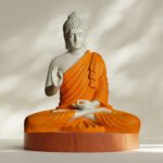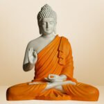 Off-White & Orange Meditating Buddha Showpiece – 15″ Peaceful Decor best for Gifting || Best For Home Decor || Office Decor || Buddha Showepiece || Buddha Idol